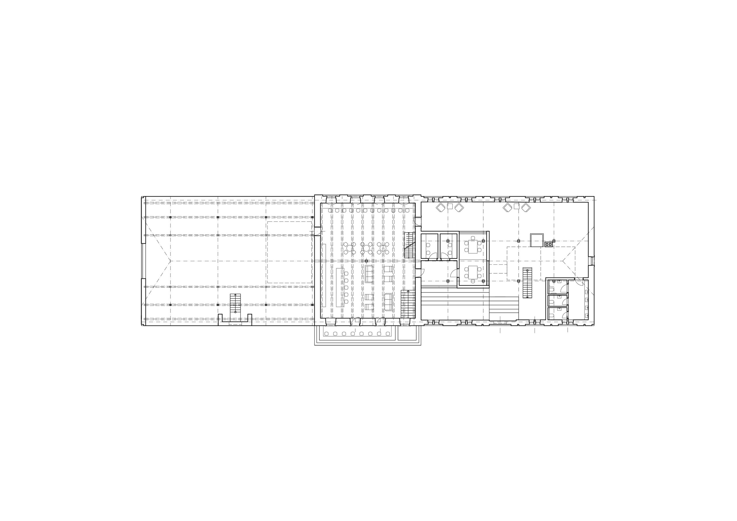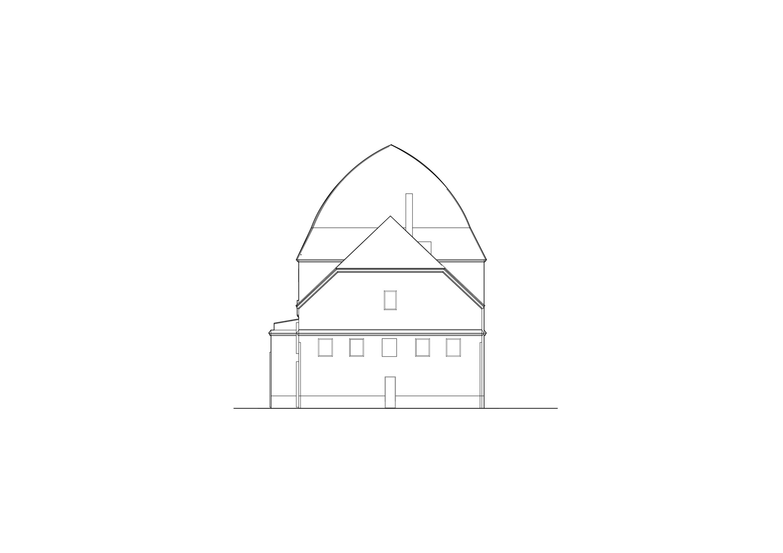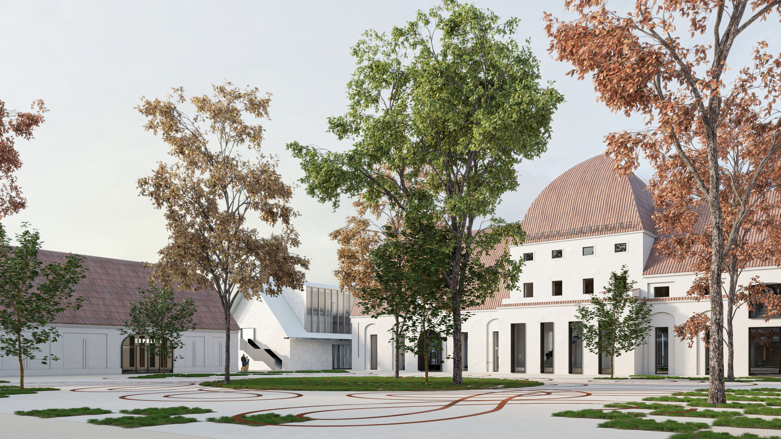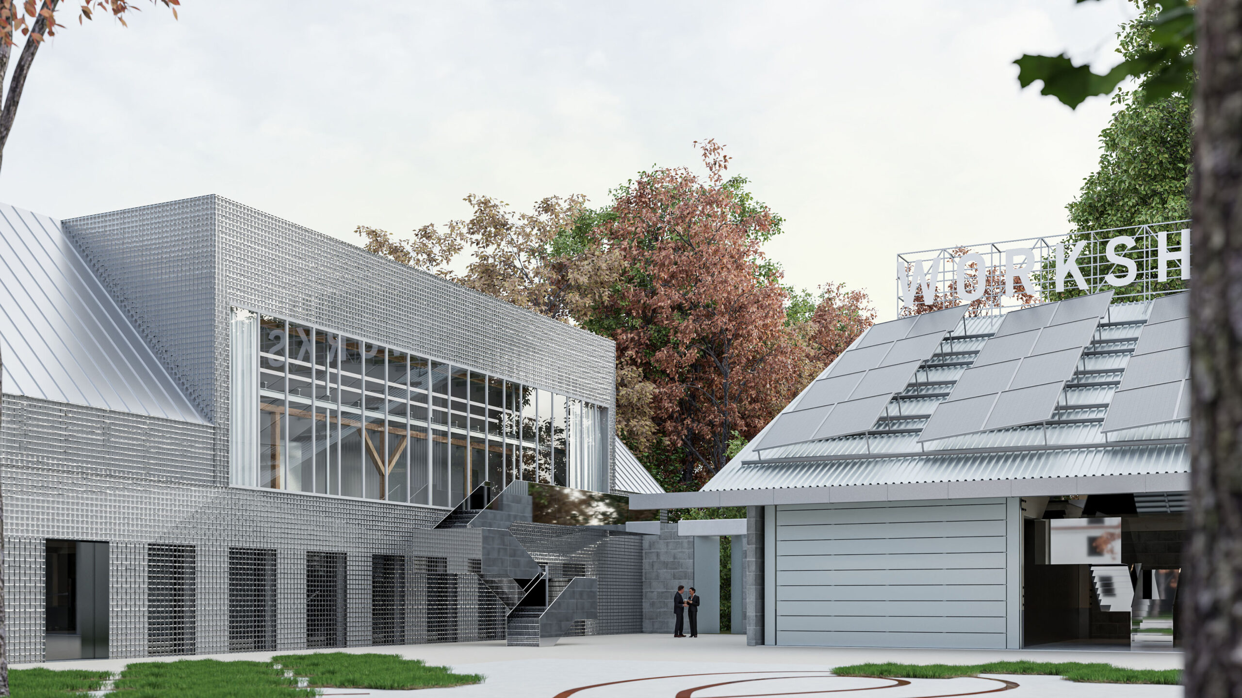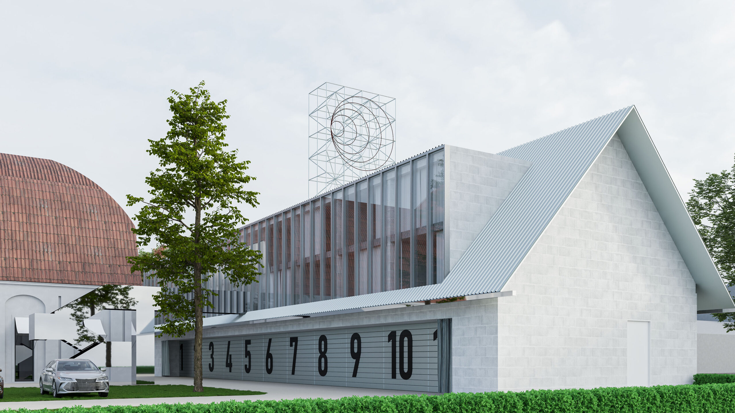 Můj pohled sklouzne k nové budově – Stáj. Na její střeše se tyčí kovový světlík, který se v noci září neonem a ukazuje cestu. Dnes se tu sešlo mnoho hostů: sleduji, jak se dvůr mění v letní kino. Mezi sloupy je napnuté plátno, lidé si přinášejí židle, někteří zůstávají v autech. Všechno utichá, světla pohasínají — a plátno ozáří první záběry filmu.