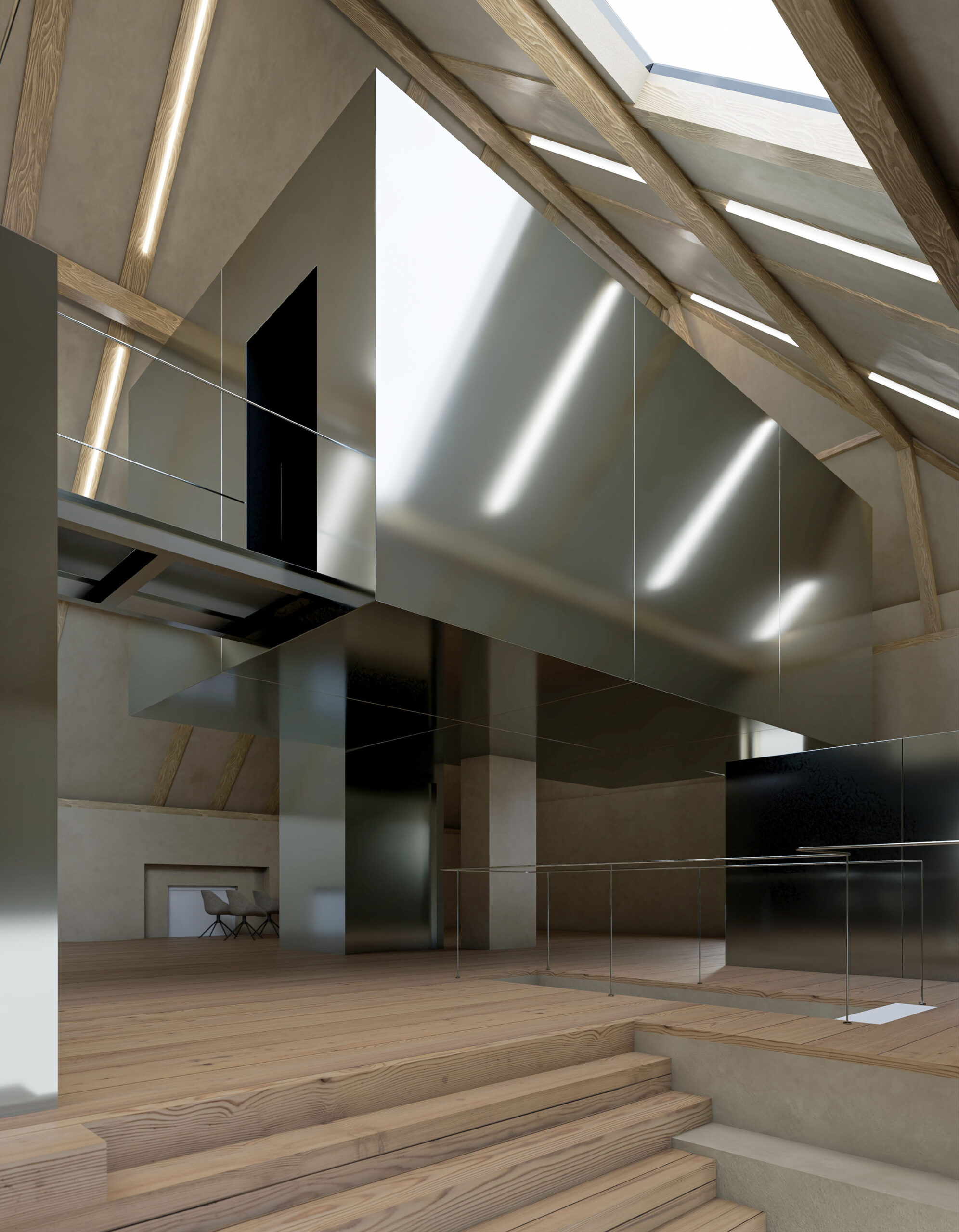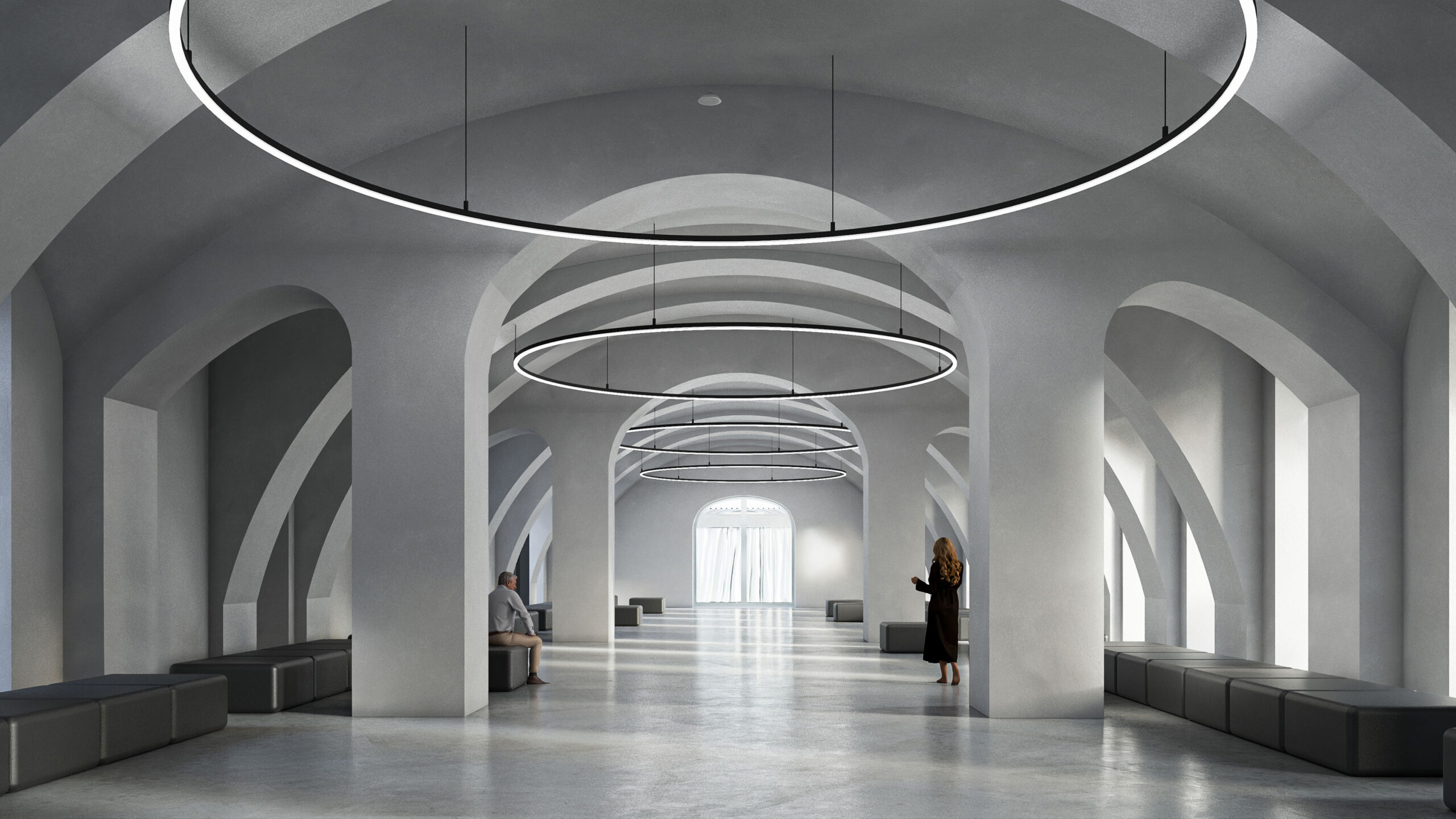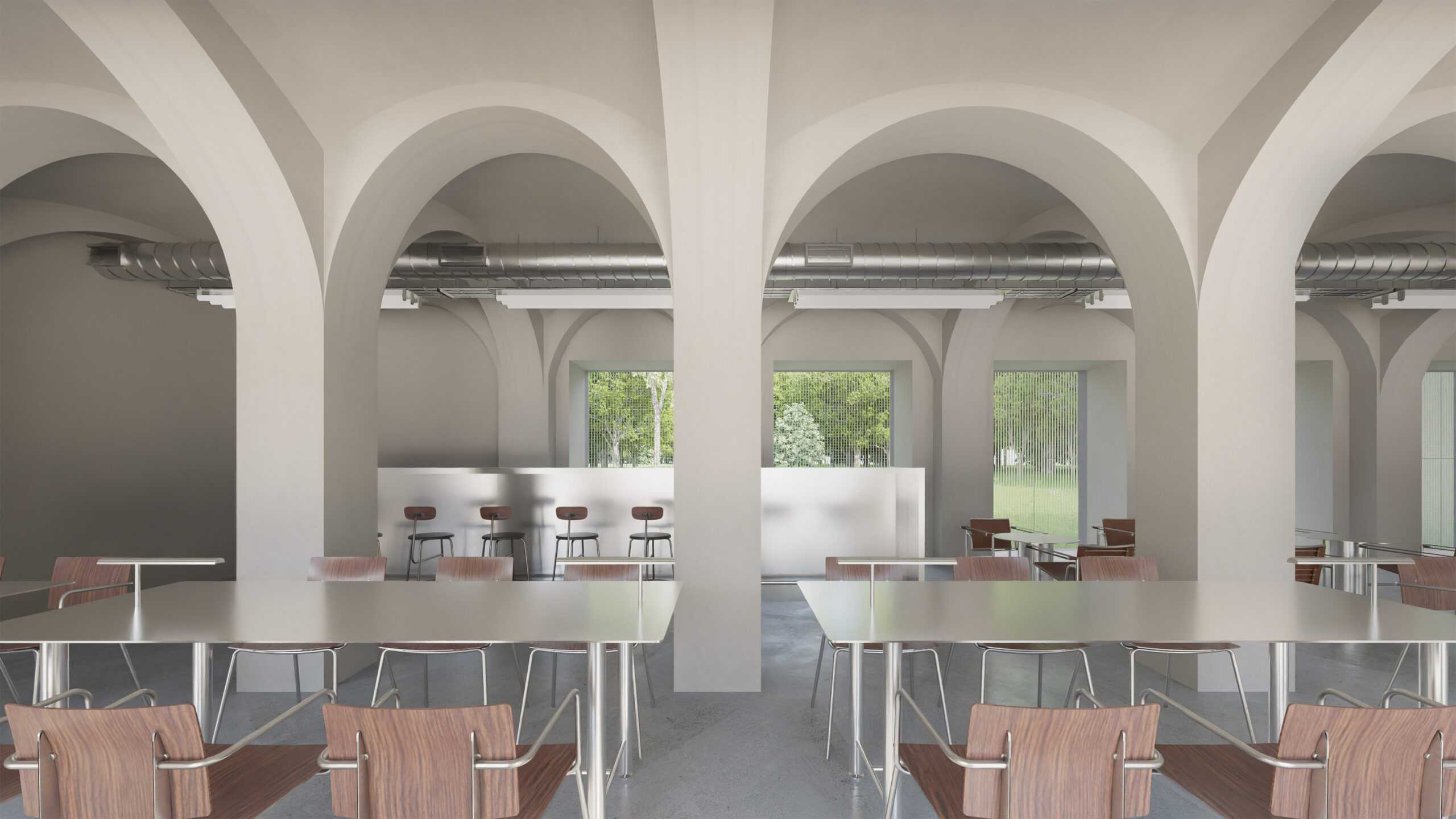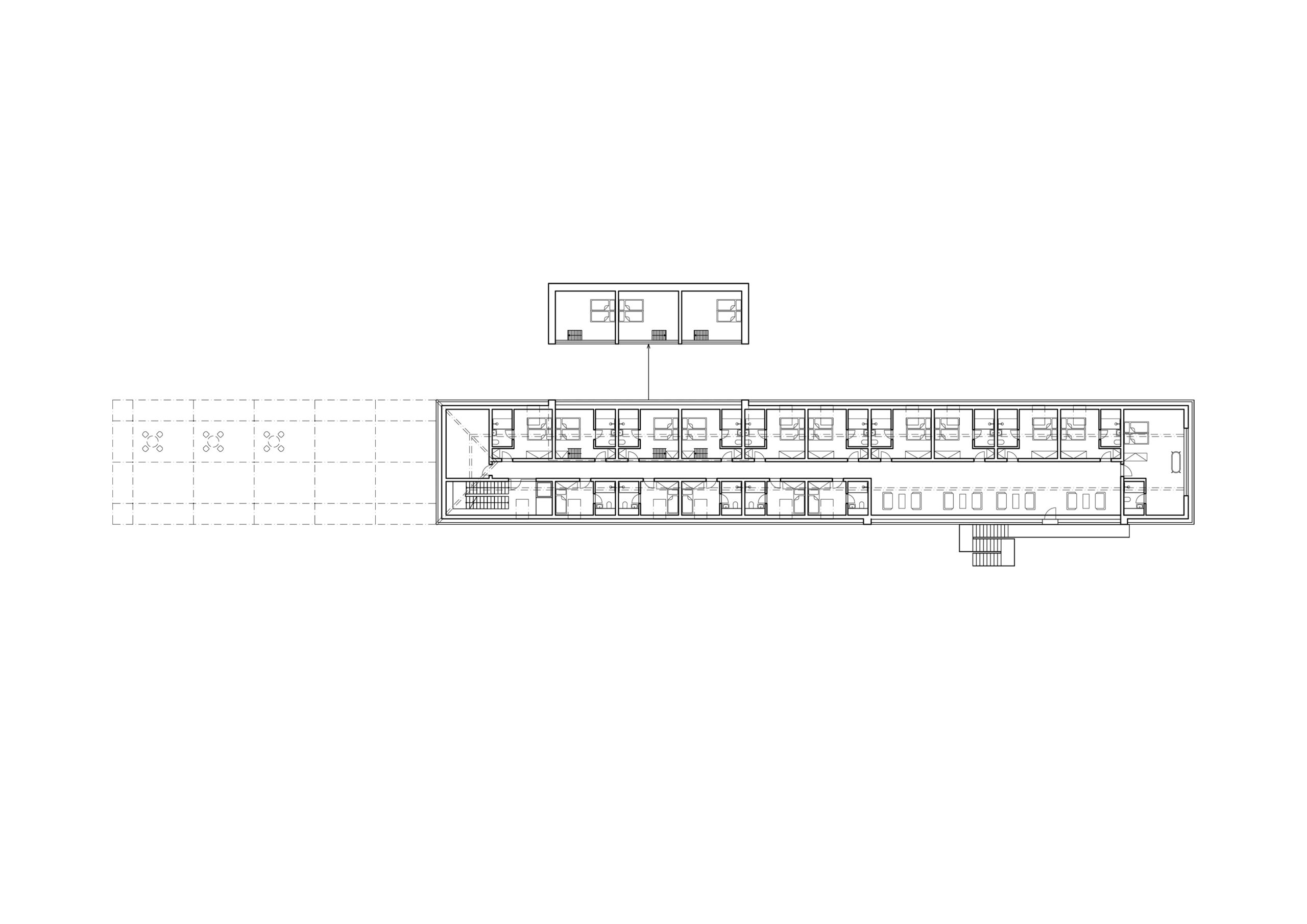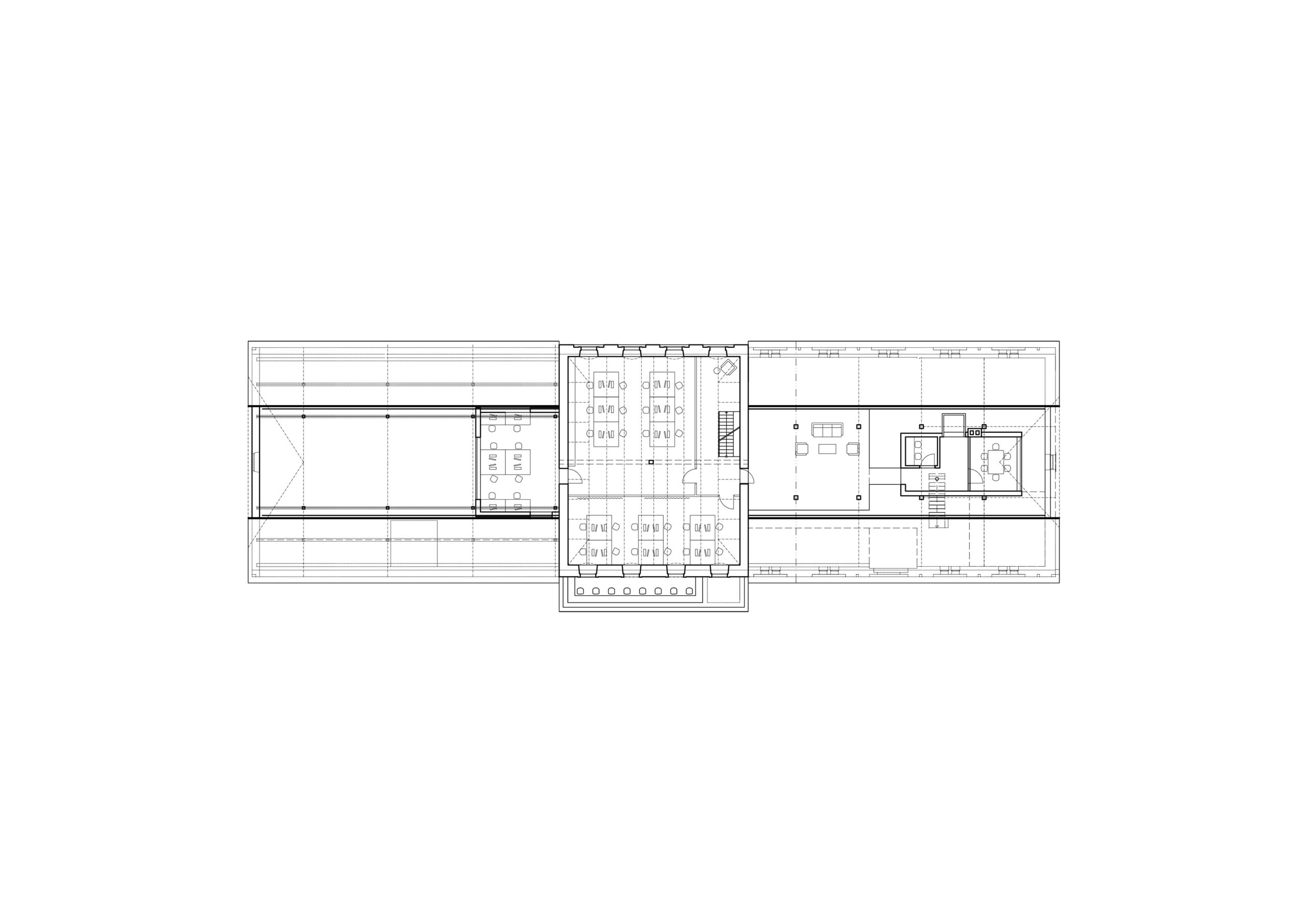 Můj pohled sklouzne k nové budově – Stáj. Na její střeše se tyčí kovový světlík, který se v noci září neonem a ukazuje cestu. Dnes se tu sešlo mnoho hostů: sleduji, jak se dvůr mění v letní kino. Mezi sloupy je napnuté plátno, lidé si přinášejí židle, někteří zůstávají v autech. Všechno utichá, světla pohasínají — a plátno ozáří první záběry filmu.