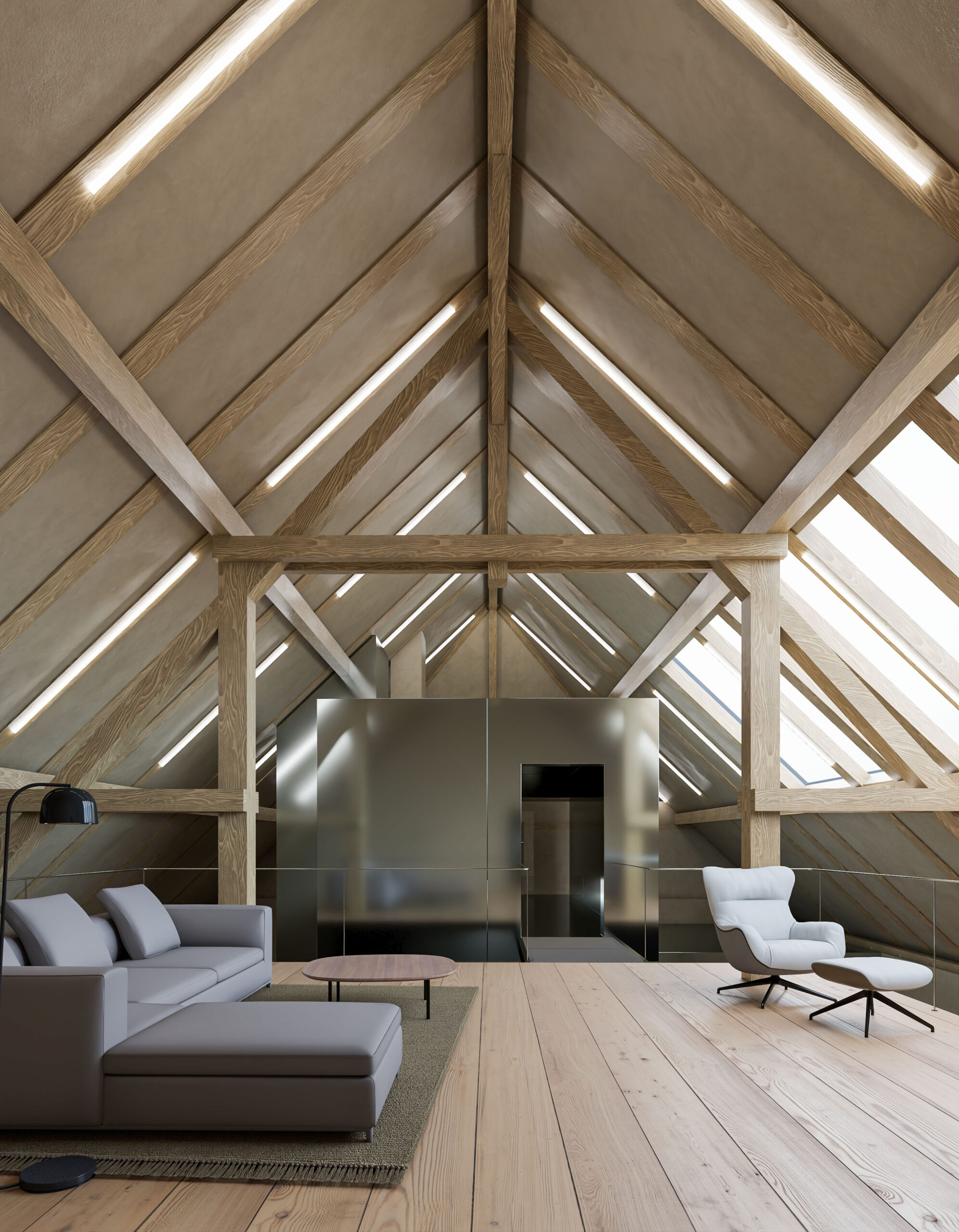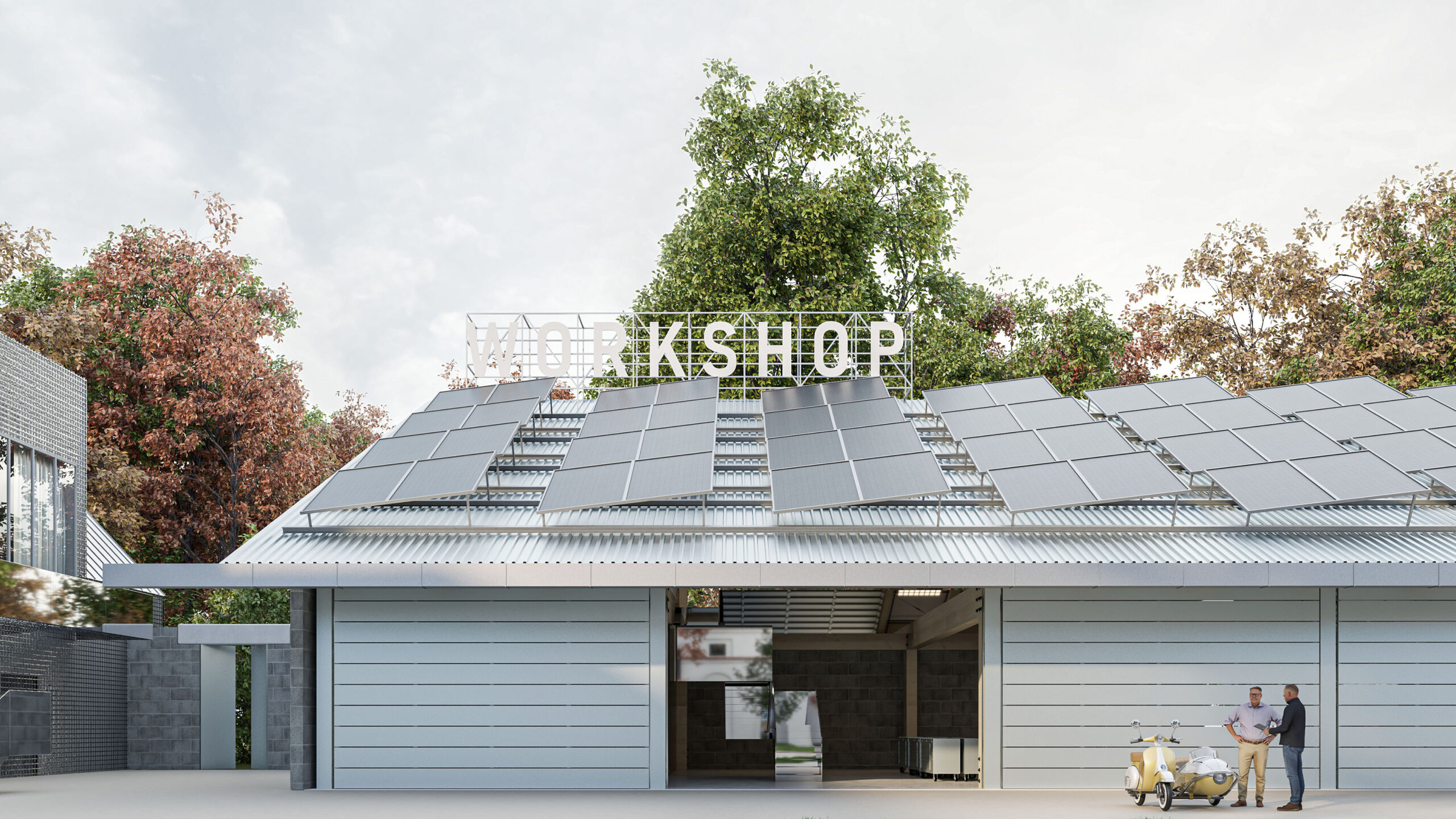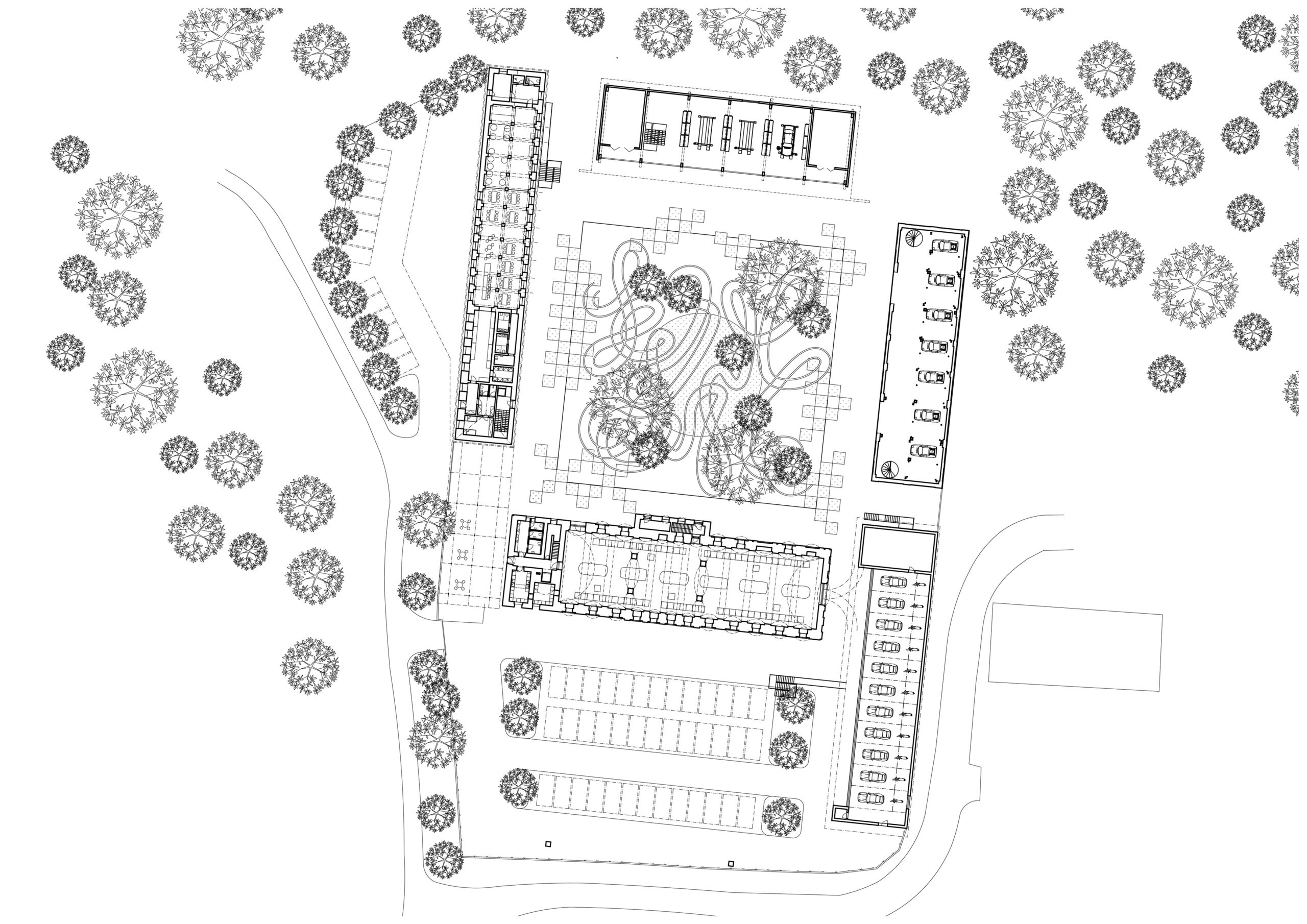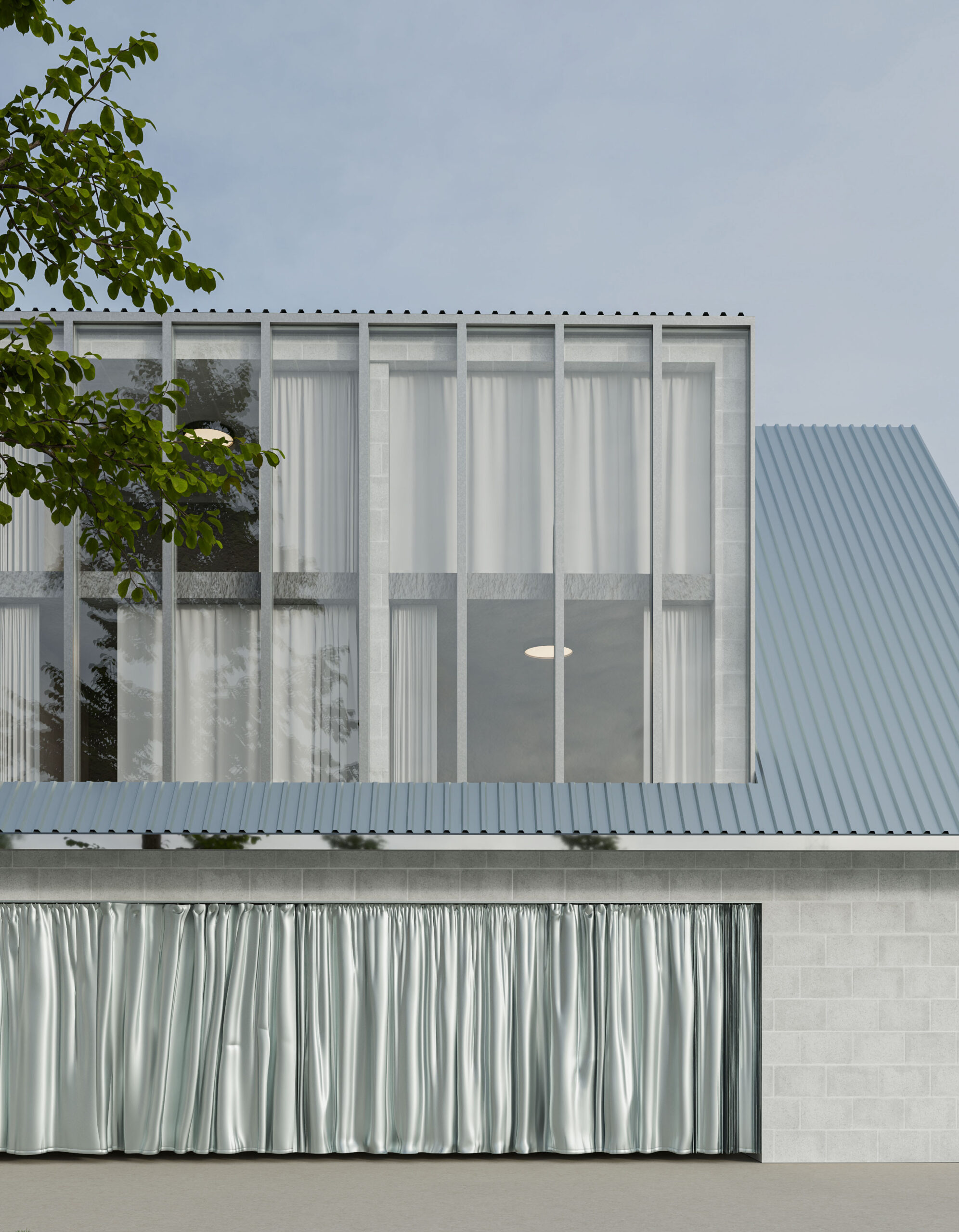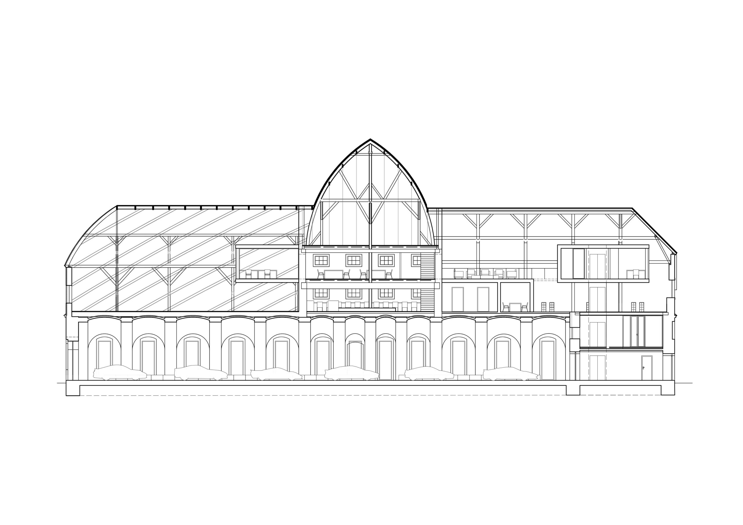 Můj pohled sklouzne k nové budově – Stáj. Na její střeše se tyčí kovový světlík, který se v noci září neonem a ukazuje cestu. Dnes se tu sešlo mnoho hostů: sleduji, jak se dvůr mění v letní kino. Mezi sloupy je napnuté plátno, lidé si přinášejí židle, někteří zůstávají v autech. Všechno utichá, světla pohasínají — a plátno ozáří první záběry filmu.